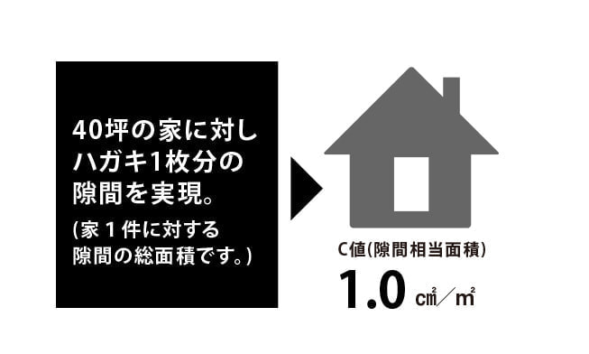 断熱性能とともに家の気密性能は大切。家全体の隙間相当面積(C値)を気密測定に数値化します。